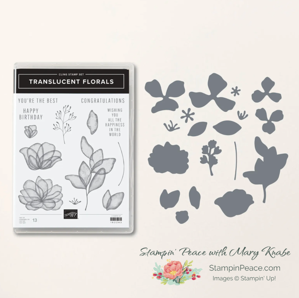 I was honored and delighted to have been asked to present the Transulent Florals Stamp Set & Dies at the Creativity Now Virtual Event for Stampin' Up! Demonstrators in June. I love the soft, delicate images and simple sentiments of this bundle making it so versatile that it can be used again and again for so many occasions and reasons for sending cards.
