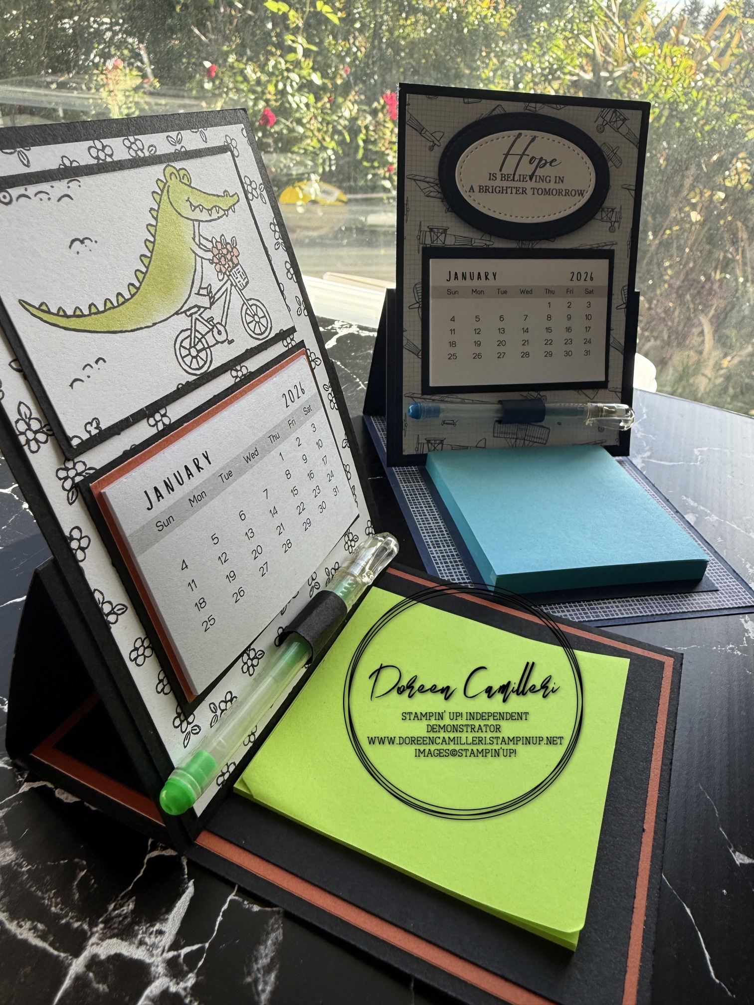 Join me in a two hour card class where you will make an Easel Calendar Card with Sticky Note Pad & Pen. Cost of the class is $20. All materials supplied.