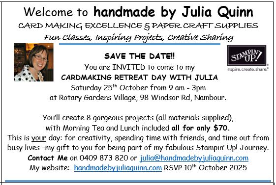 Join us as we create together at this all day event. Make 8 projects and the day includes lunch and morning tea.