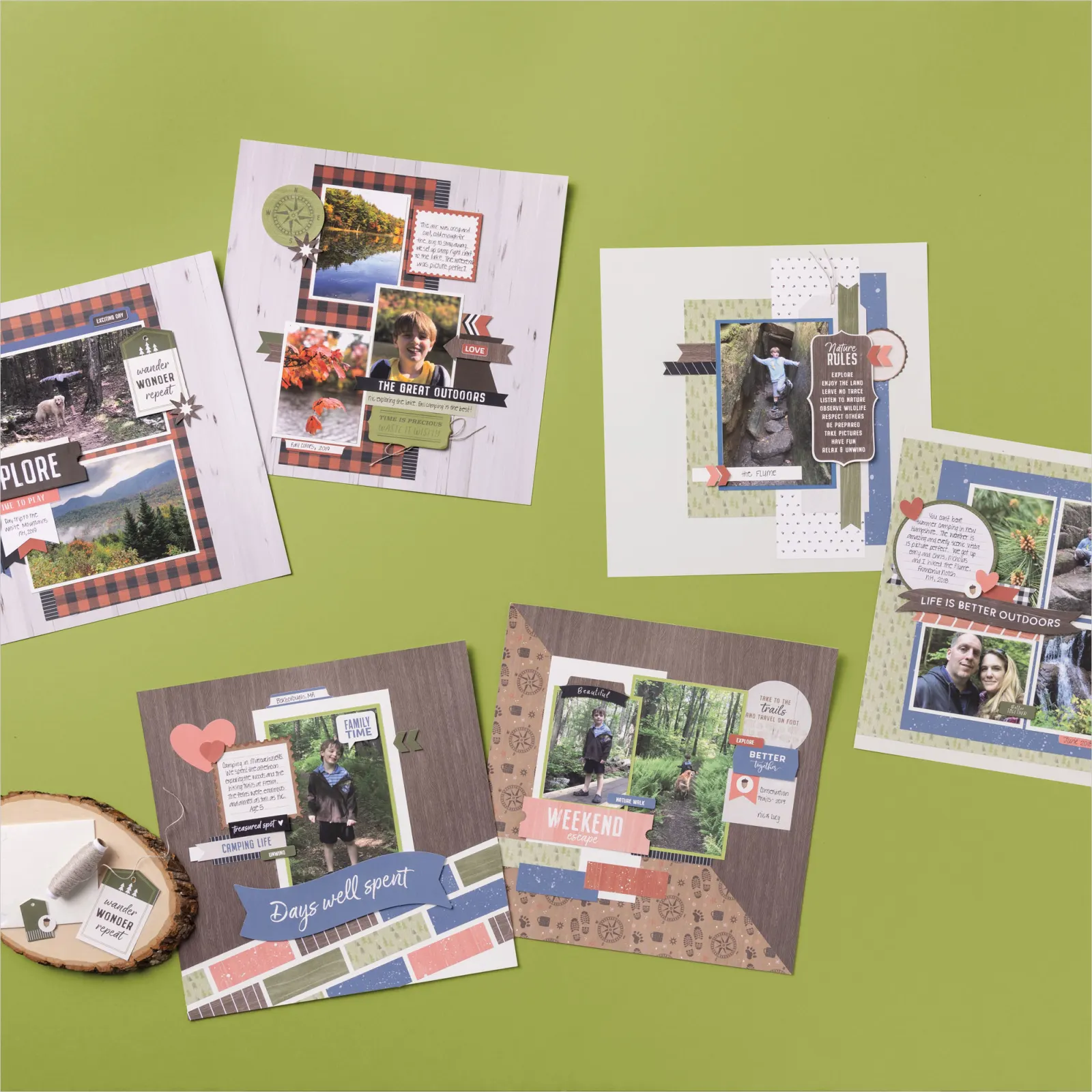 Capture your outdoor memories with the Weekend Adventures Scrapbooking Workshop Kit! With nature-inspired paper and themed stickers and images, this kit makes three two-page layouts to document hikes, picnics, spontaneous road trips, and more.
