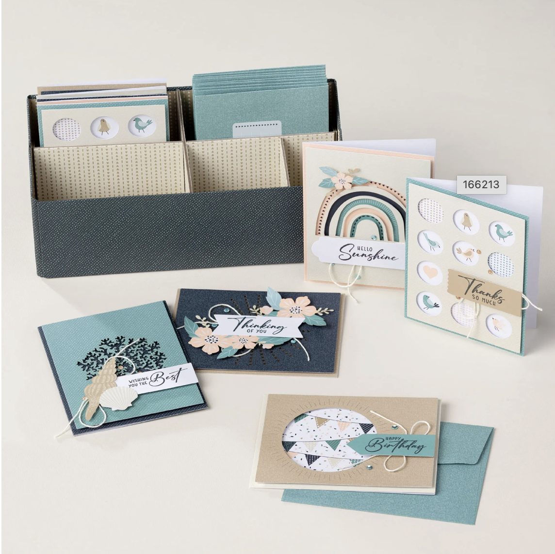 Join this fun event online from the comfort of your home or register to join me at The Roost! Watch the event without stamping or purchase the Handmade & Heartfelt Kit Item #166213 to join along. Cost of the kit is $32. If you join me at The Roost there is no additional fee but you will want the kit. The kit includes: A stamp set, 10 cards and envelopes, a card organizer, shaped labels, twine, glitter adhesive, embellishments, a mini ink pad