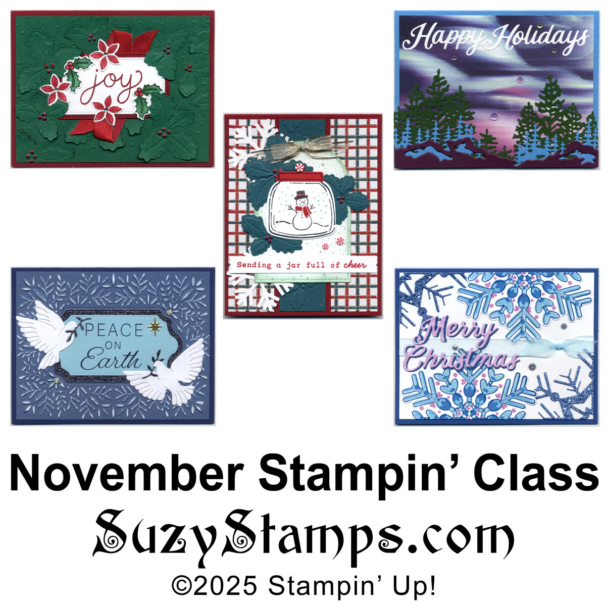 We will make 5 beautiful hand stamped holiday cards. Price includes choice of one adhesive.