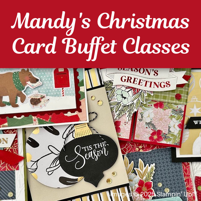 During my Christmas Card Buffet Classes, you'll be able to create 4 unique cards, that you can choose from a wide range of different designs (not necessarily those pictured above). You may choose to come to one of the classes, or join us for both!