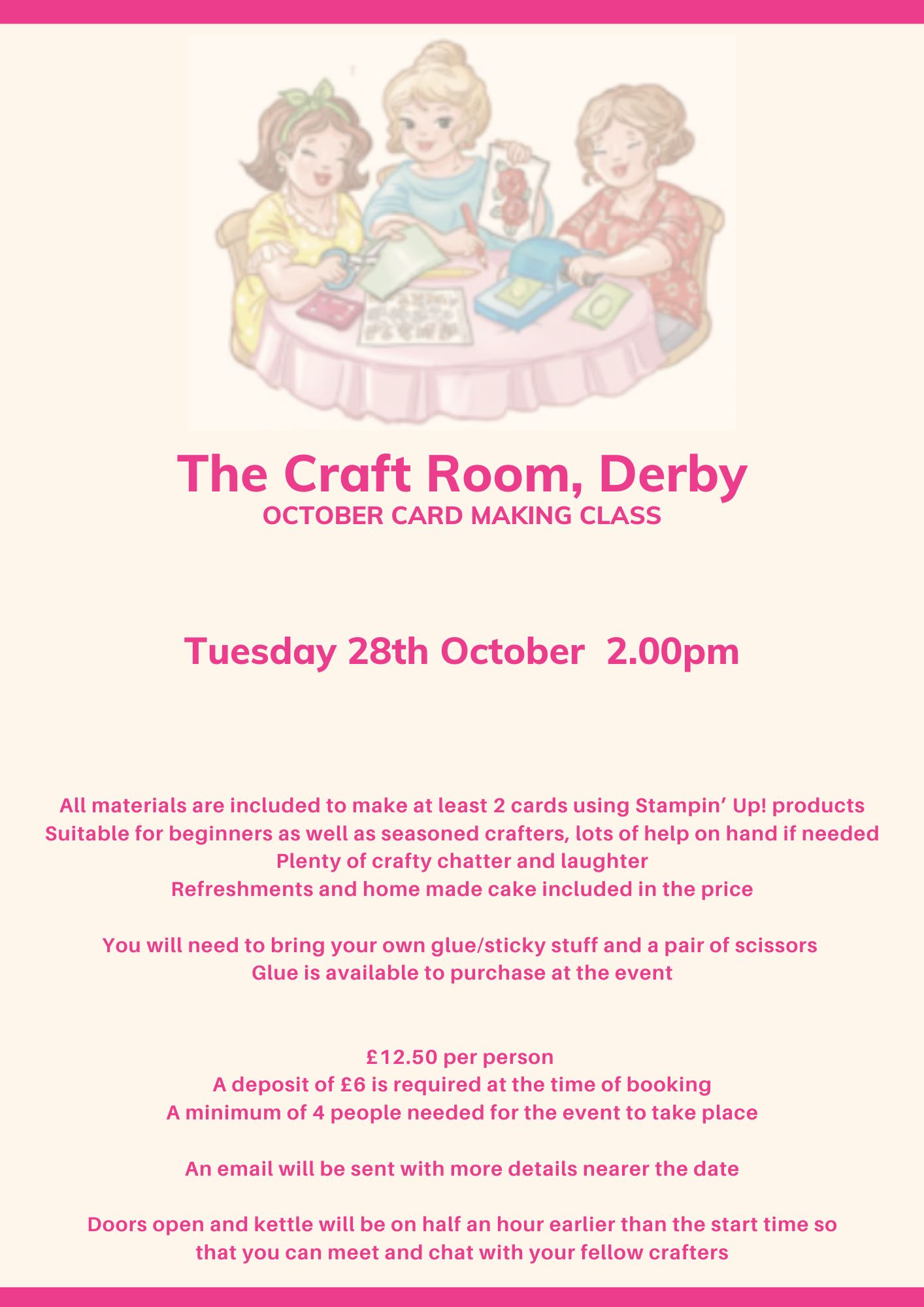 We'll break halfway through for homemade cake and refreshments, and there’ll be a sales dresser for you to have a little puruse of too.