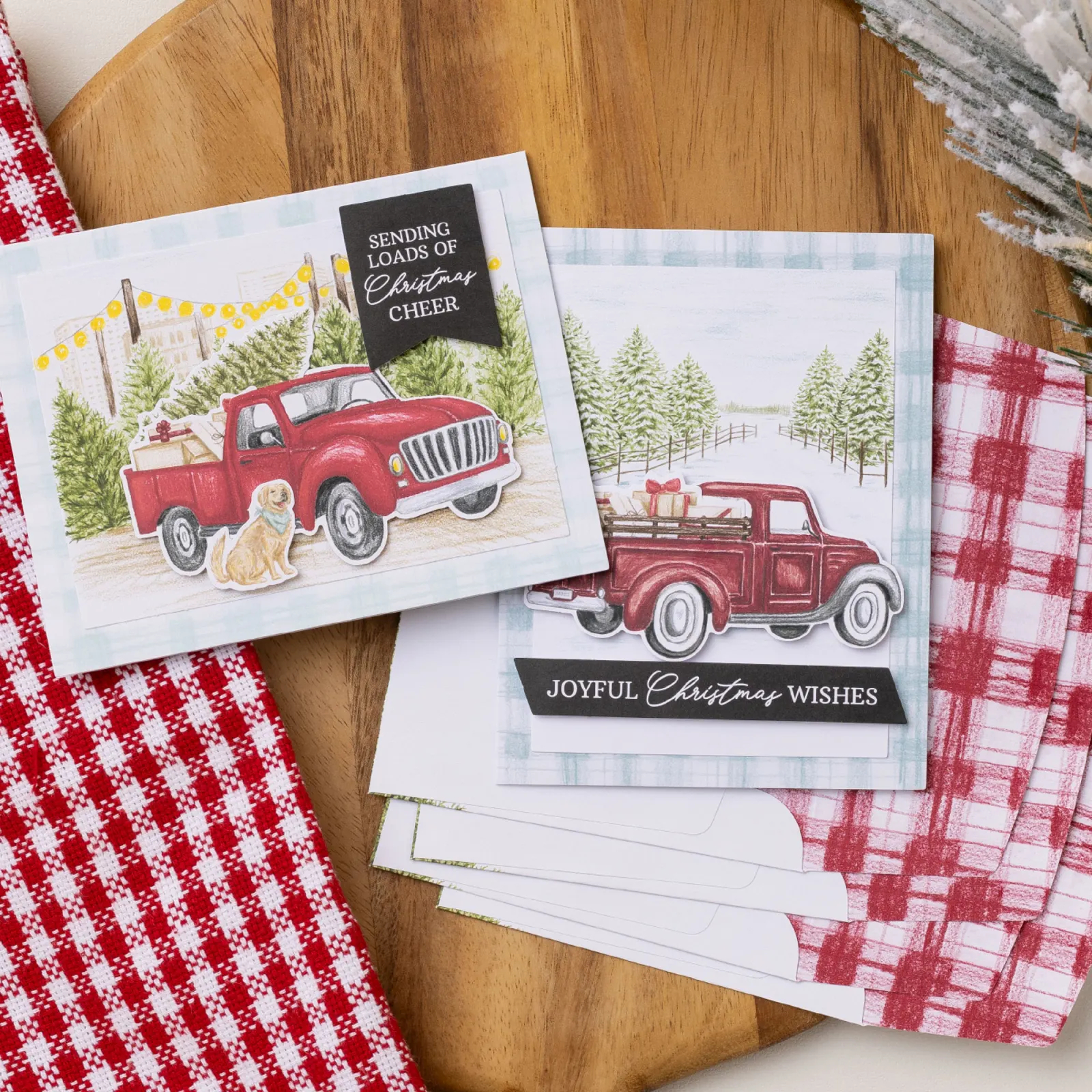 Join me for a fun and creative morning of paper crafting at the Compassion Cafe. While you sip your favorite brew, you’ll make 8 Christmas cards—4 each of 2 unique designs. This vintage-inspired kit features a nostalgic Christmas truck packed with presents, set against a scenic tree farm backdrop. Add festive stamps and heartfelt sentiments to deliver an extra helping of holiday happiness in every card you create.