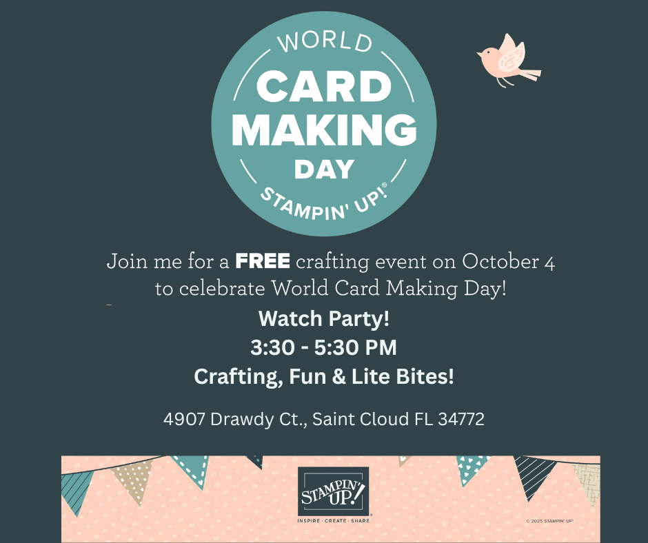 World Card Making Day Watch Party!! Come on over and let's enjoy the afternoon while we craft with folks from around the globe. If you have the featured Handmade & Heartfelt Kit, bring it with you. Don't have one? You don't need one! Plus there will be a few available at the Watch Party.