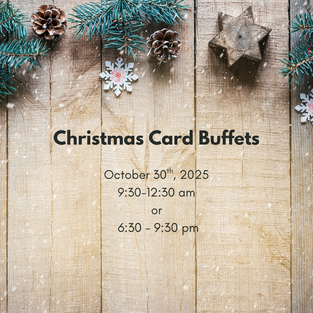 Join me in my studio for my annual Christmas card buffets and get cards made to send to your family and friends this holiday season! This event will offer ten different designs, where you'll make as many of your favourites as you'd like.
