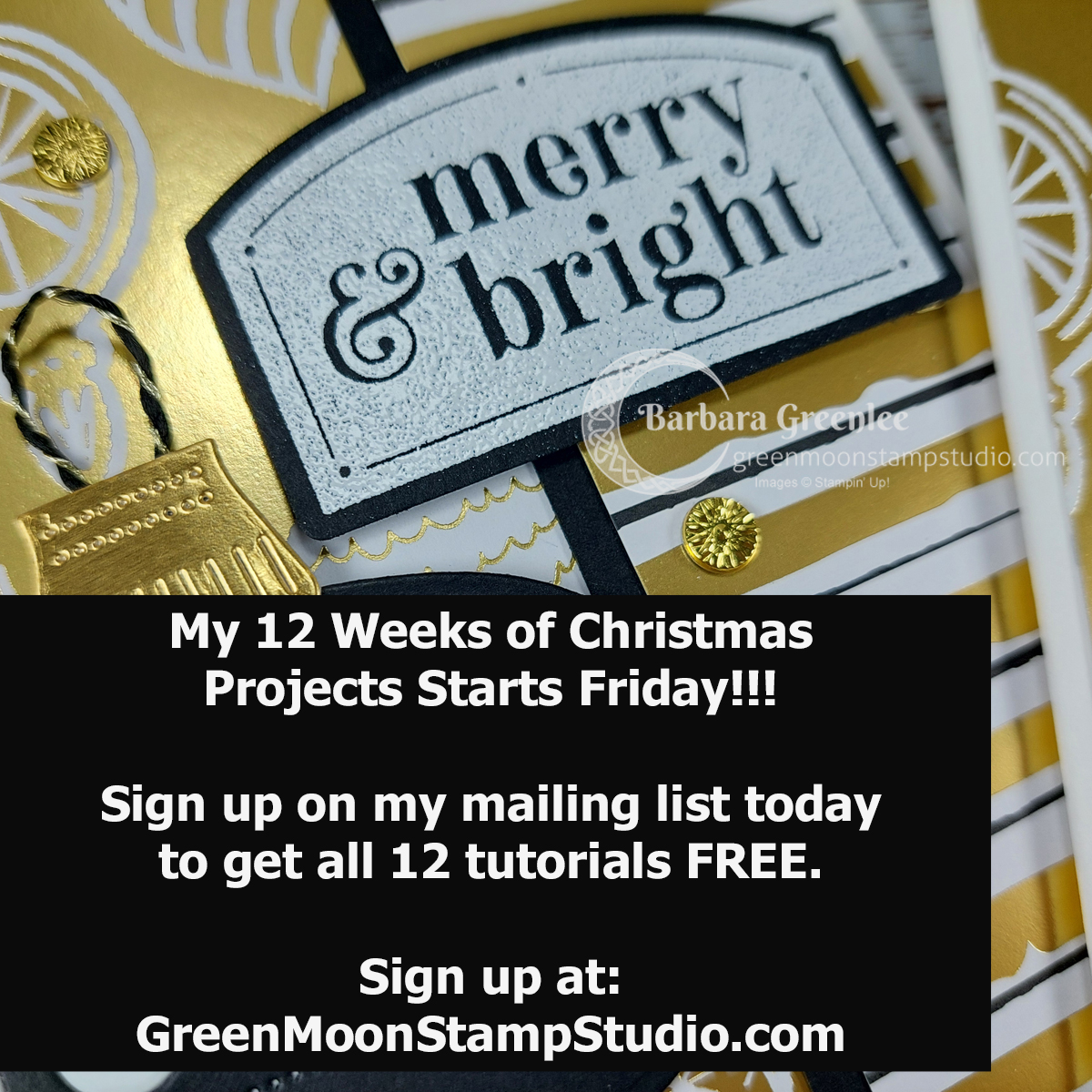 My 12 Weeks of Christmas starts today. If you're not already on my mailing list, sign up on my website. These weekly free tutorials go on for 12 weeks, so it's not too late. https://greenmoonstampstudio.com/