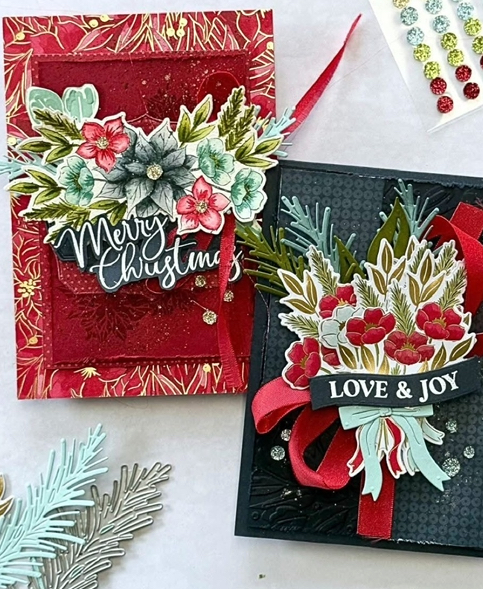 Make 3 Christmas cards. Bring your own scissors, liquid glue and tape runner. The class fee is $10 or free with a $20 order.