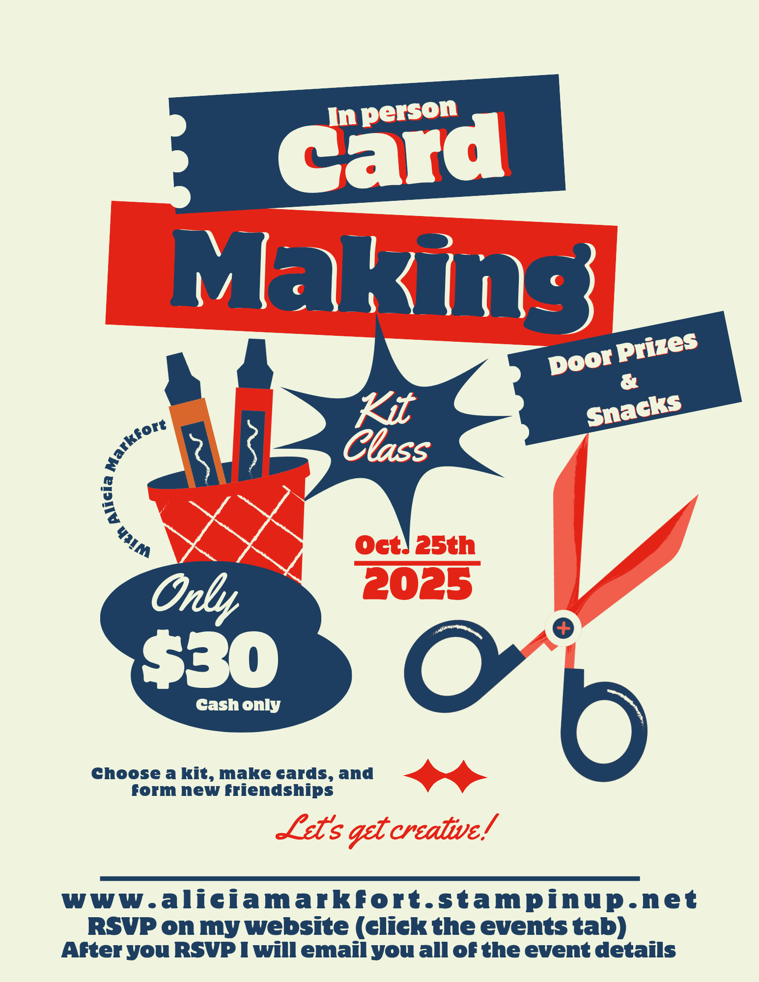 I will be hosting a in person Kit Class at my house Saturday October 25th 2pm-4pm. After you RSVP I will email you all of the details as well as my home address.