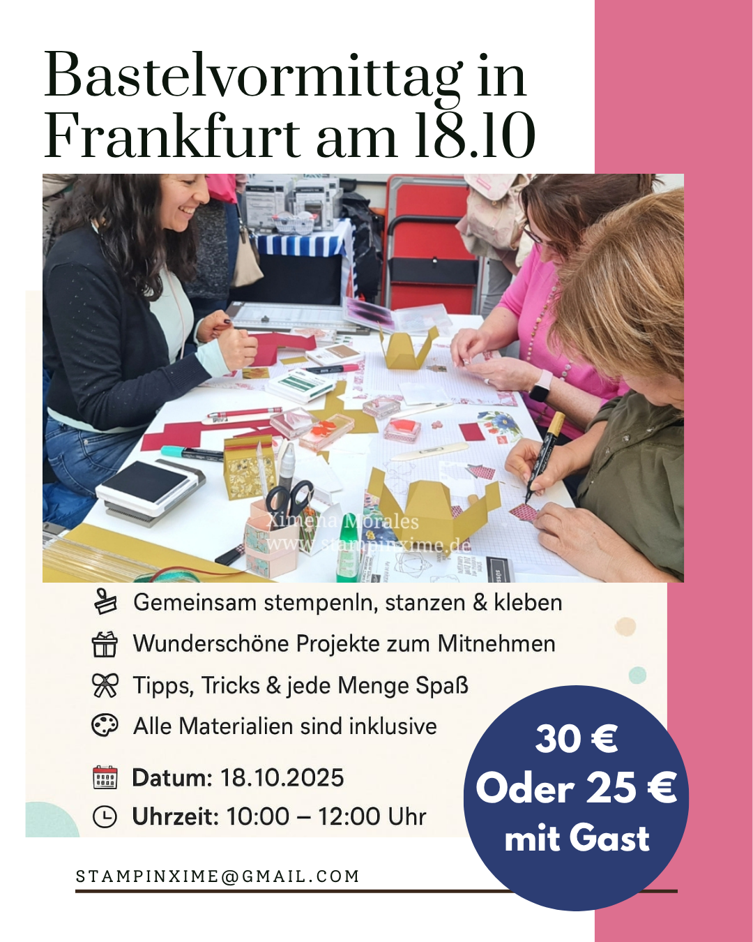 Lerne neue Ideen und Techniken kennen 🎁 Verbringe eine schöne, kreative Zeit in netter Gesellschaft 💝 Und nimm natürlich deine selbstgemachten Karten mit nach Hause!