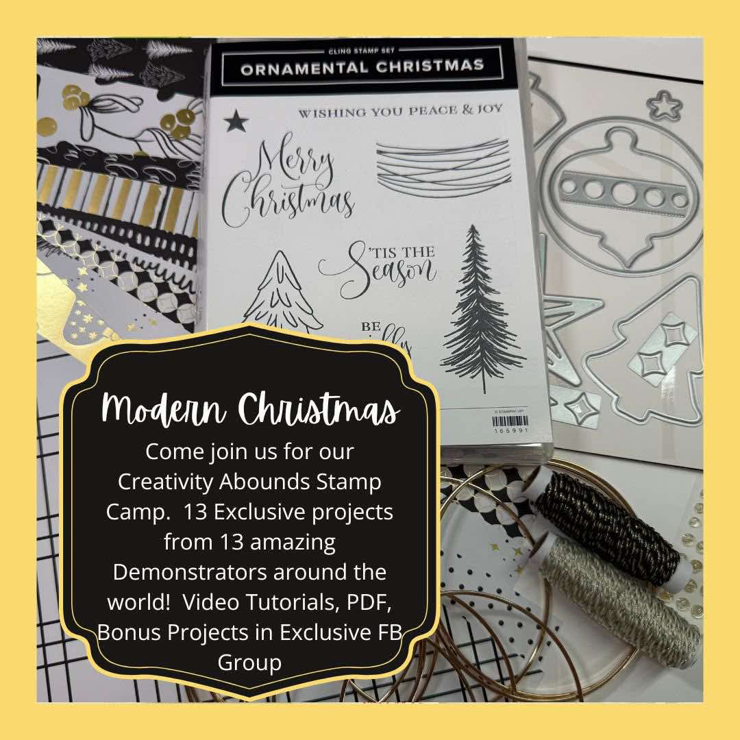 Join me and 12 demonstrators from around the world to make many projects with the Modern Christmas Suite. You will receive 13 Make & Take kits and then see 13 different projects demonstrated live.