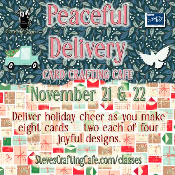 Card Crafting Café – Come to a card crafting class at my home café. Whether you’re just starting out or you’ve been crafting your entire life, you’re sure to enjoy the friendly company and relaxed “work-at-your-own-pace” atmosphere. Your class kit comes with everything you need including full color, step-by-step instructions with measurements so you can recreate more cards when you get home.