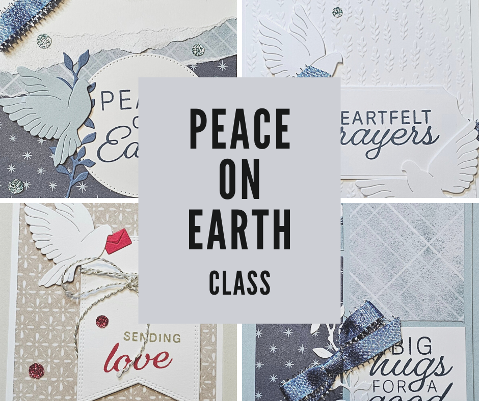 4 Card kit, include all the precut scored, die cut cardstock and envelopes. Full package of embellishments, six 6" x6" designer paper, 1 yard of ribbon, 1 yard metallic twine. You will need the Peace on Earth bundle or substitute from your stash or add on.