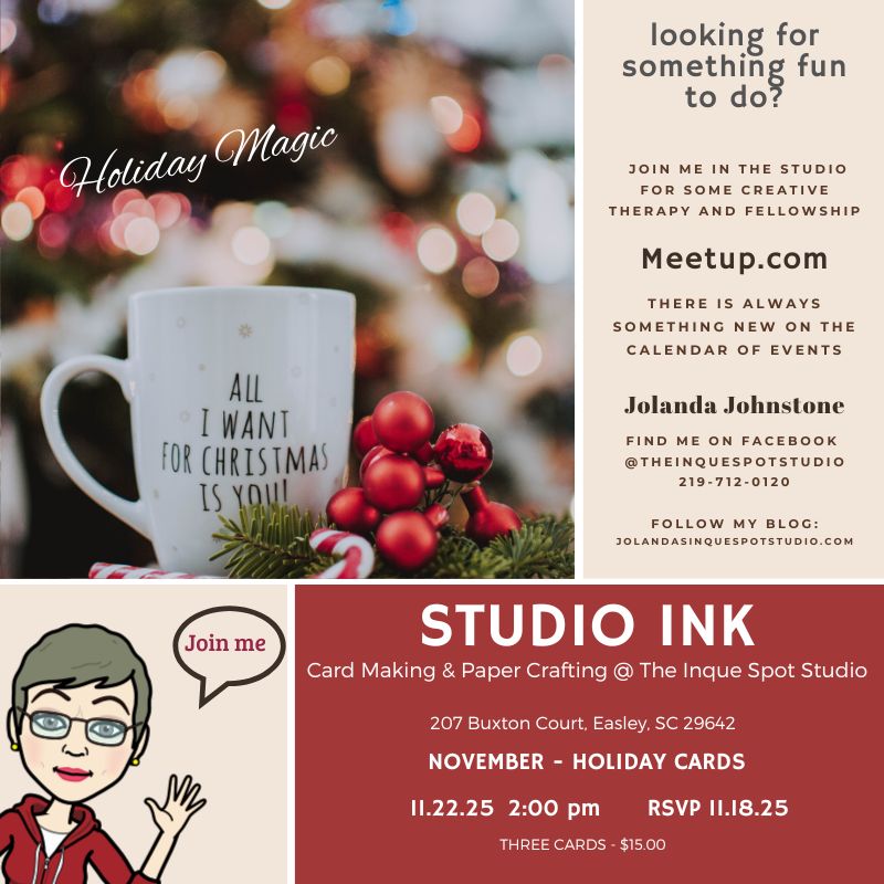 Using decorative Rubber Stamps, Ink, and Paper and perhaps an embellishment or two, we will make three lovely cards.