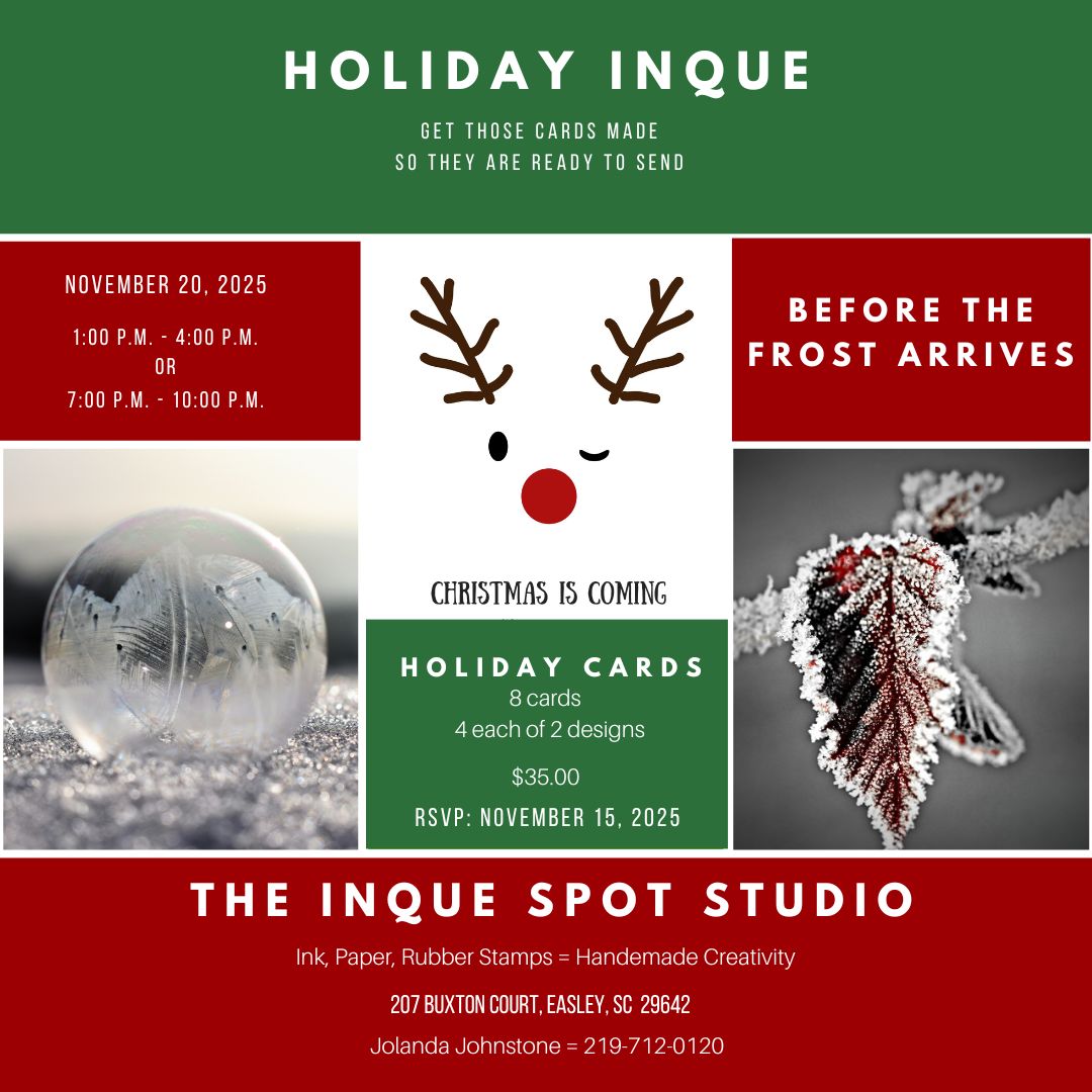 On the last Thursday of the month before Thanksgiving, I will be hosting this Holiday Card Class. Each class will feature eight cards. You will make 4 each of the two or 2 each of four designs.