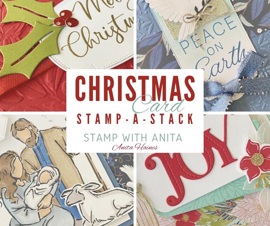 I invite you to join me in my studio for my annual Christmas Card Stamp-a-Stack. You will stamp 3 each of 4 different designs (12 Cards Total)