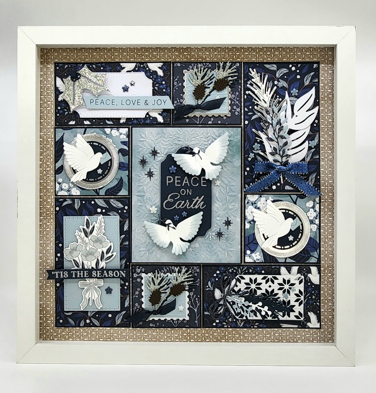 Create a stunning 12" x 12" home décor sampler in serene winter blues. (Frame not included.)