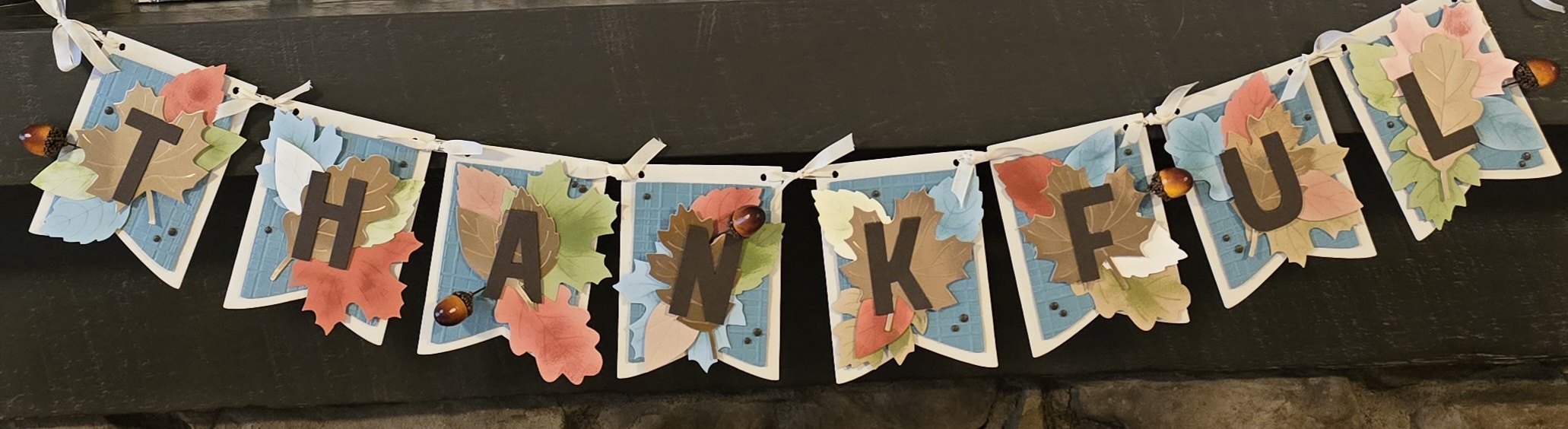 I am SO excited to share this new banner perfect to add to your Fall and Thanksgiving decorations! This amazing kit will feature product from the Harvest Home Garland Kit and the Party Bundle Dies that will let your create your very own one of a kind banner! Choose up to 10 letters to help you share your own holiday sentiment.