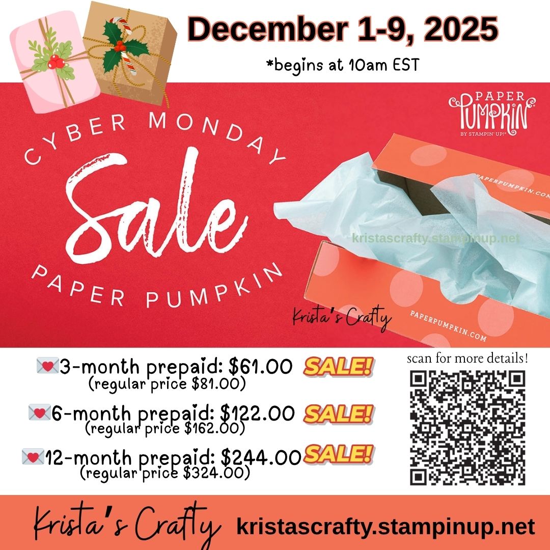 ๐จStarting December 1 at, 8 am MT...10am EST, Stampin' Up! is offering โจBIG SAVINGS โจon prepaid Paper Pumpkin subscriptions!