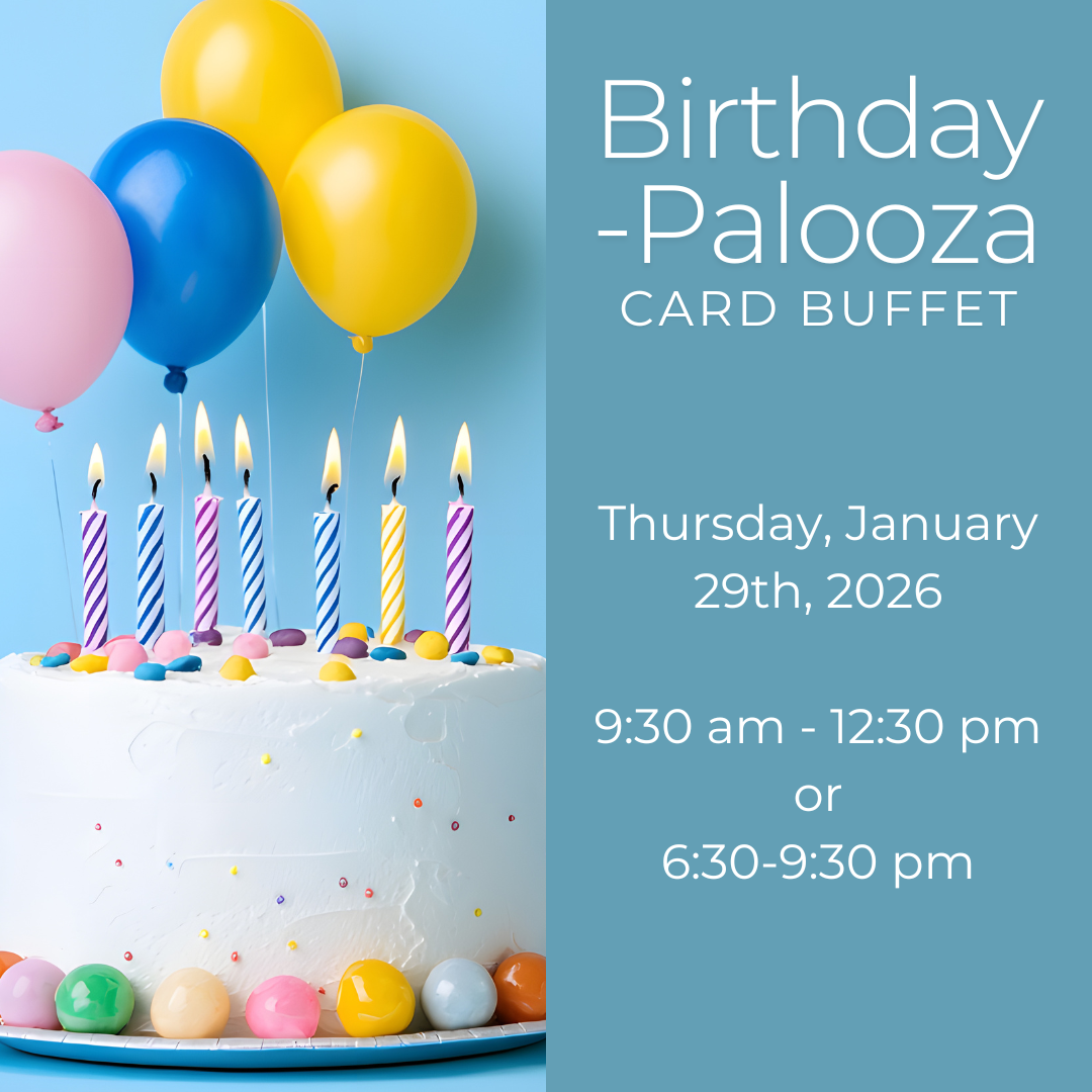 Join me in my studio for my annual Birthday card buffet and make birthday cards to send to your loved ones this year! This event will offer ten different designs, where you'll make as many of your favourites as you'd like. Choose from a variety of sentiments to customize your cards as desired.