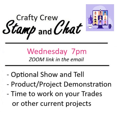 This is our monthly gathering to share wht we've been working. We start with an optional Show and Tell, which leads into conversation about projects in general. We usually have a short demonstration of some kind, either about new product or a project. And then lots of work time, especially useful if you signed up for swapping this month.