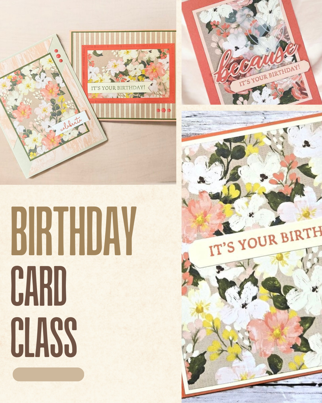 Come and join me at this great location to make some cards. We will be making 5 birthday cards, using rubber stamping and some other paper crafting techniques. All levels of crafters welcome even beginners. All supplies and materials are included.