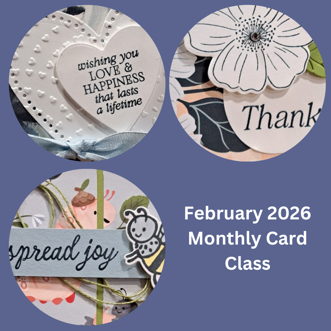 This is the class to go version of my Monthly in-person card class. Same cards - you just pick up the supplies kit or have it mailed to you for an additional cost - and make them at home.