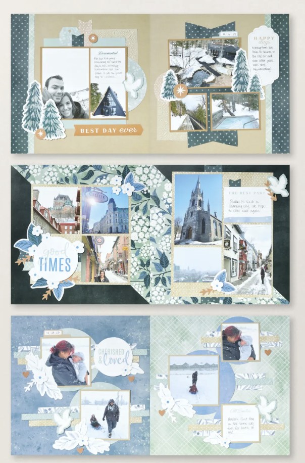 The Peaceful Days Scrapbooking Workshop Kit has winter, dove, and greenery images, perfect for our winter crafting. you'll have so much fun swapping out the included photo placeholders for your own photographed memories.