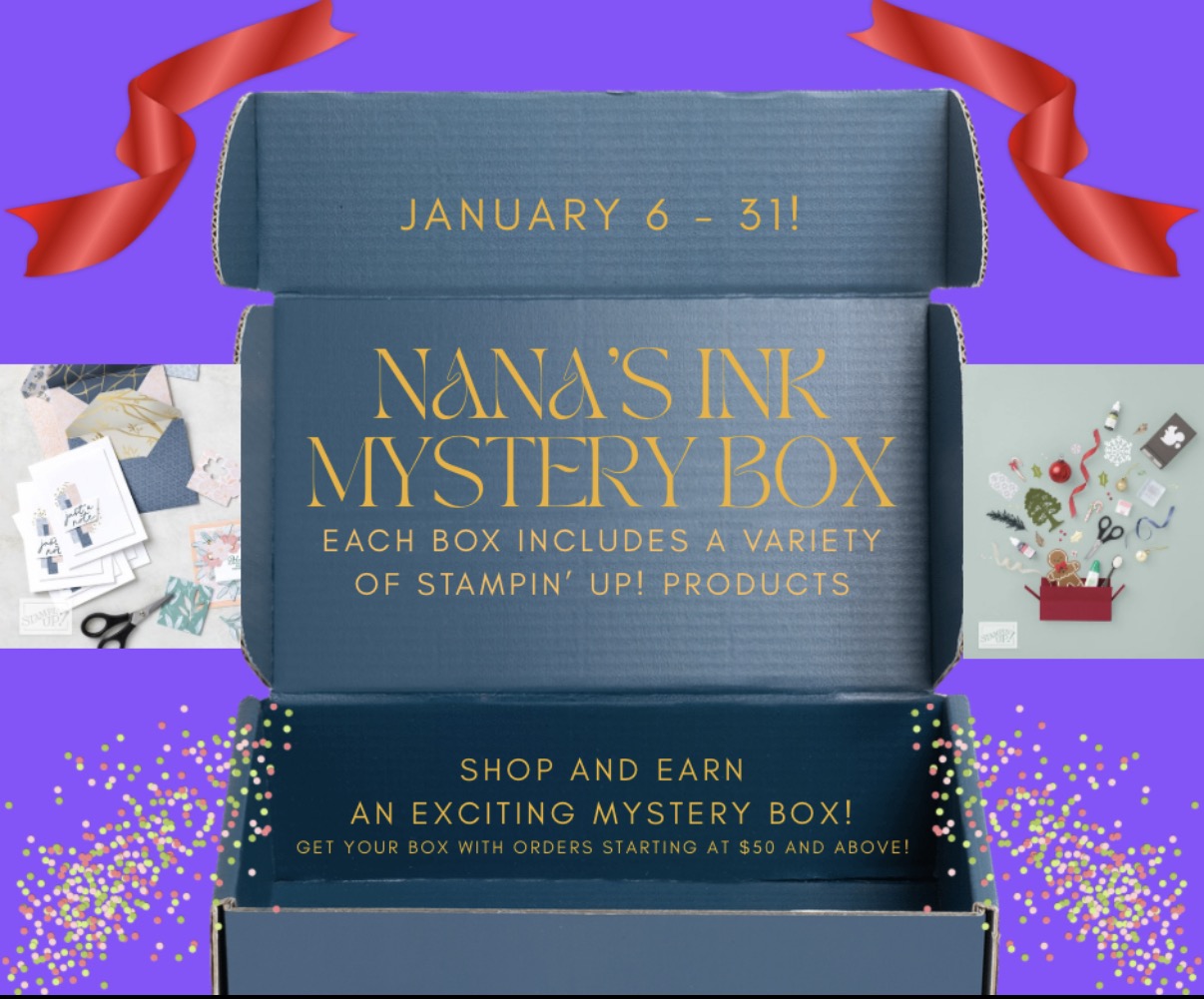 Nana's Ink Product Mystery Boxes will each include a variety of Stampin'Up! product such as Stamps, Dies, Designer Series Paper, Embellishments, Ribbon and more!! Some products are brand new, others gently used, but all are in great condition. And since it’s a mystery, every box is an Exciting Surprise!