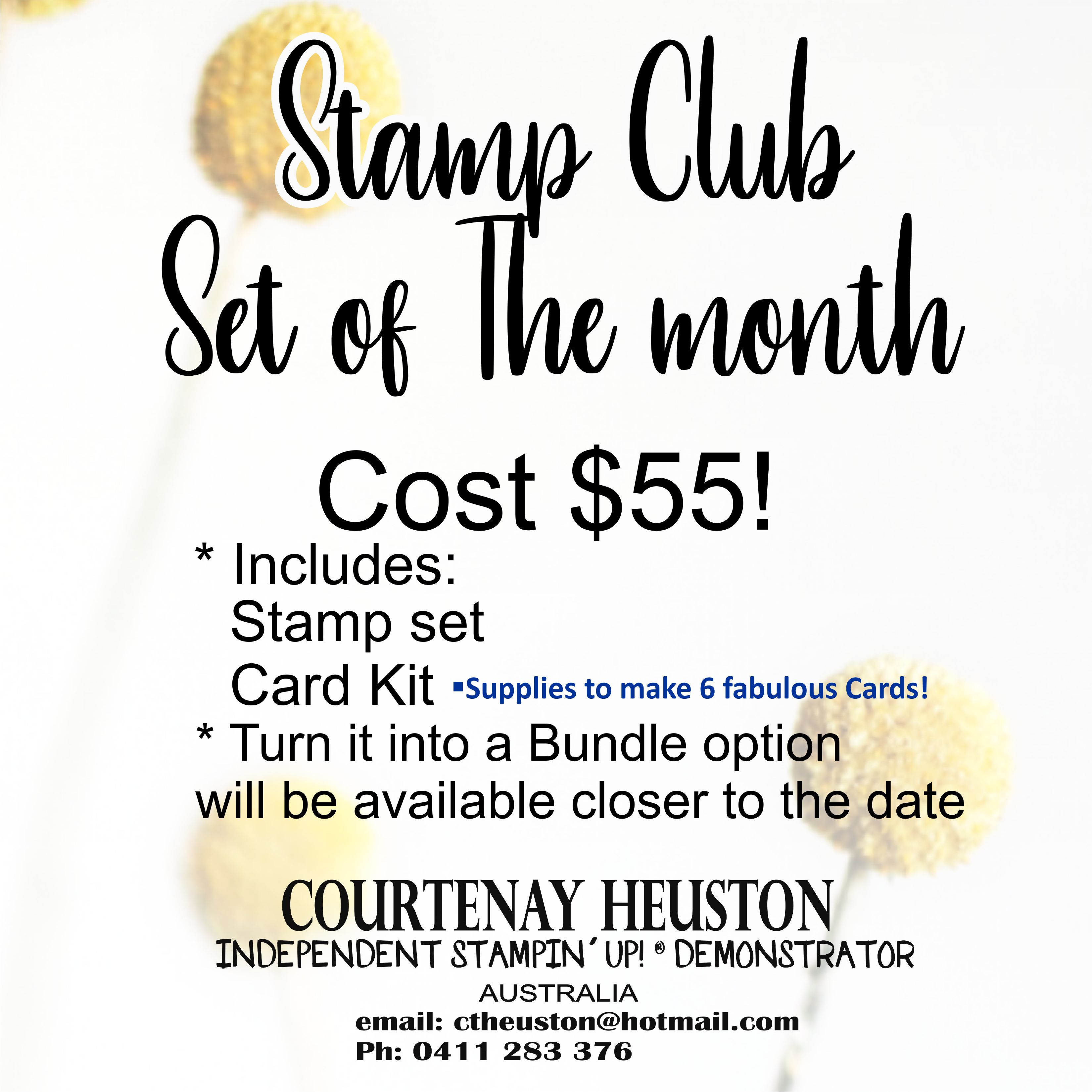 Cost $55 includes your stamp set (RRP $35-$40)