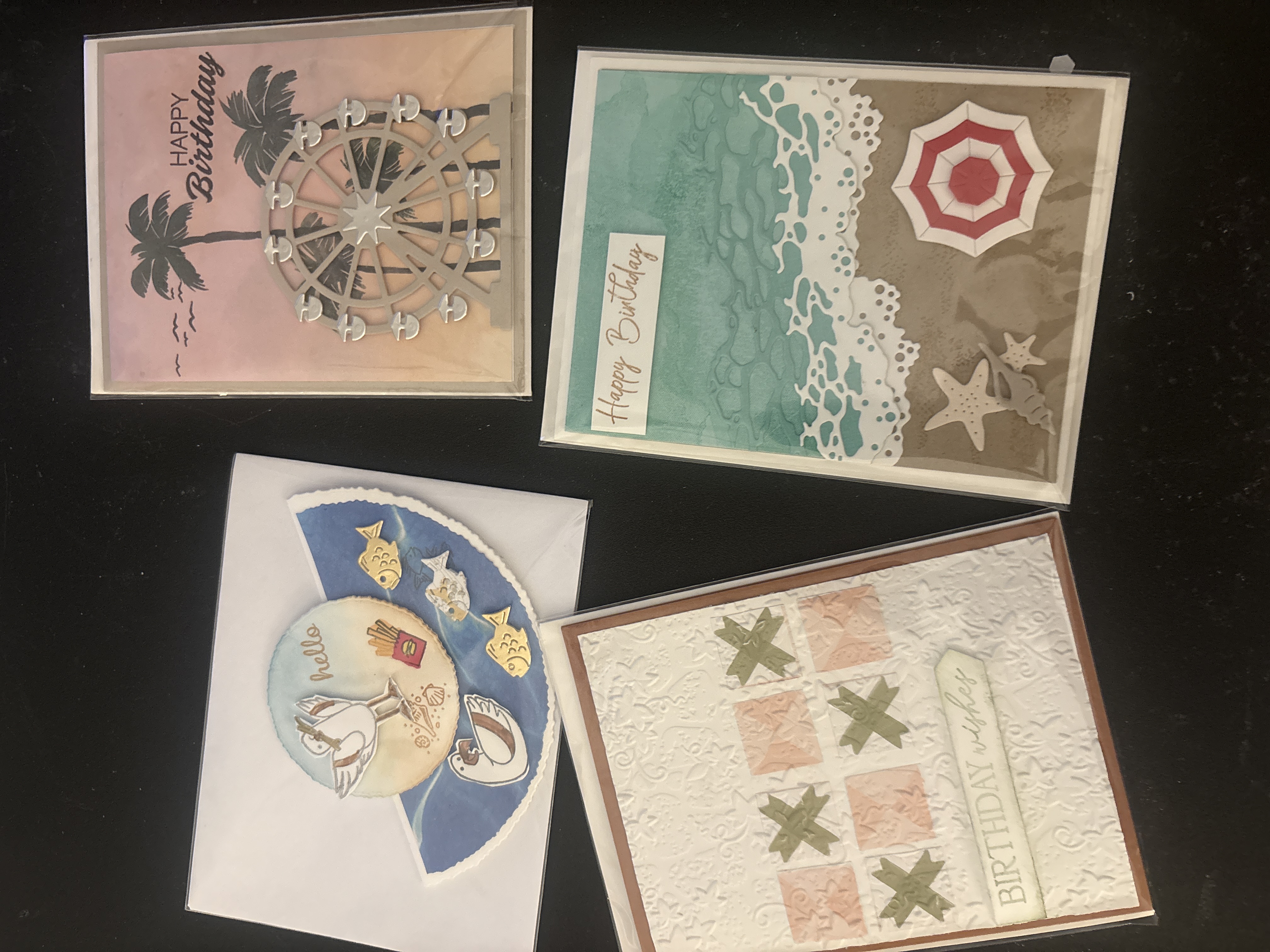 I'll post the four cards when I have the samples prepped. Join us to make four cards at either 10:00 a.m. on 11944 Hunters Creek Road or 1:00 p.m. at the clubhouse 1900 Observation Blvd. Venice, FL. Please RSVP to reserve your card kits and place at class.