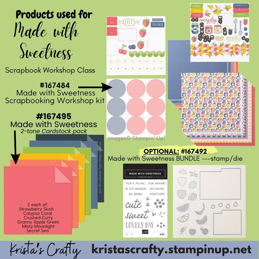 โI will be adding my "Krista's Crafty" touch to this Scrapbook class, and we'll be creating MORE pages (10-12 instead of the normal six!), because of the additional two-tone cardstock you've purchased to complete this kit!๐๐๐ฅณ