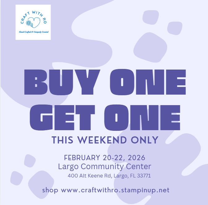 BOGO Sale this weekend! Stop by and see me at the Largo Community Center this weekend. I’ll be selling current and retired products from Stampin' Up including designer series paper (patterned), stamp sets/bundles, card kits, scrapbook workshops, die cuts, embellishments, markers and much more.