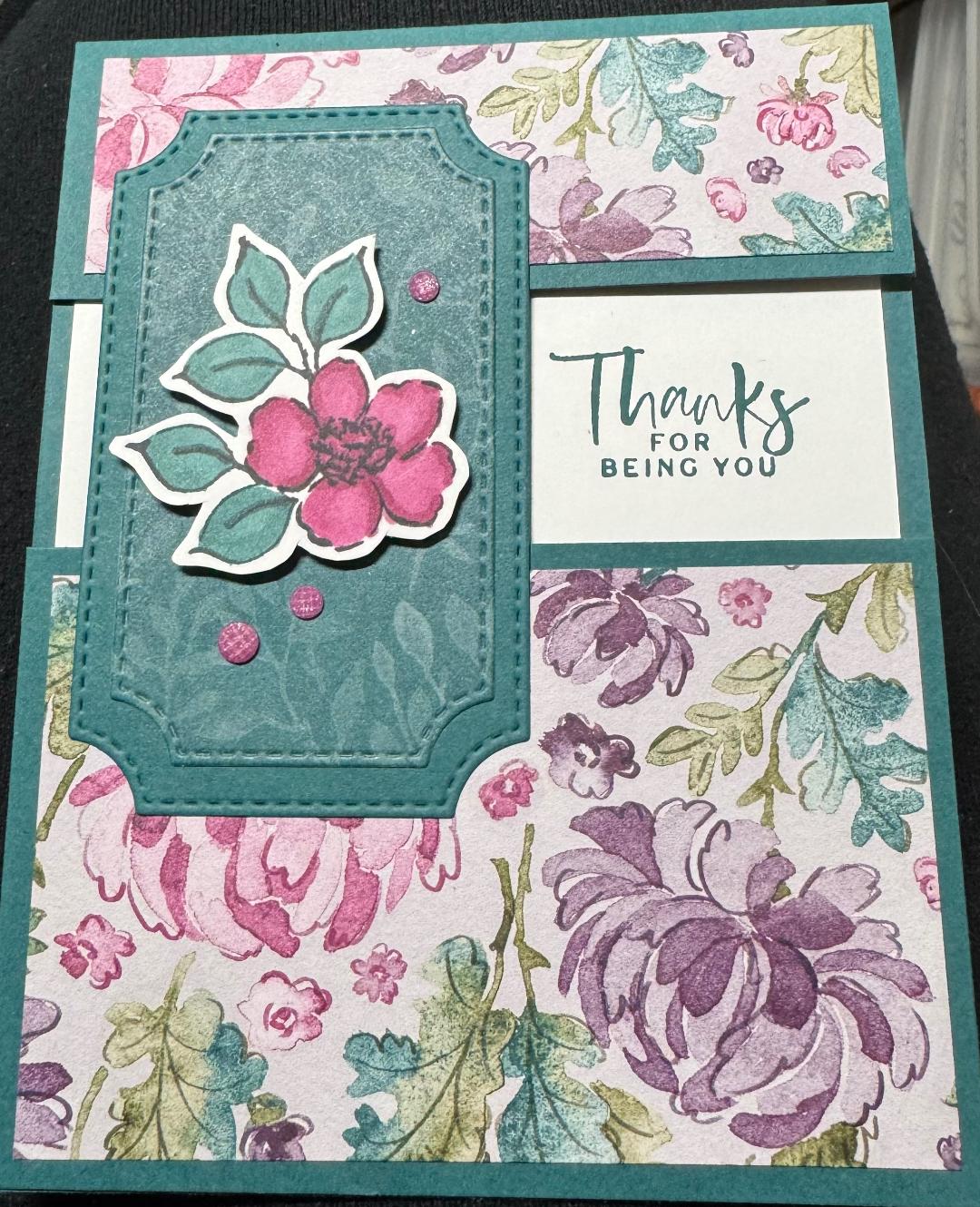 We will make three cards for $6--one using the sunflower embossing folder, the second one will be a fun-fold and the third one will be missing a middle (a different way of displaying the front of the card!) Just bring your snips, double-sided stickey tape and glue. This class is also offered on Friday, February 13.