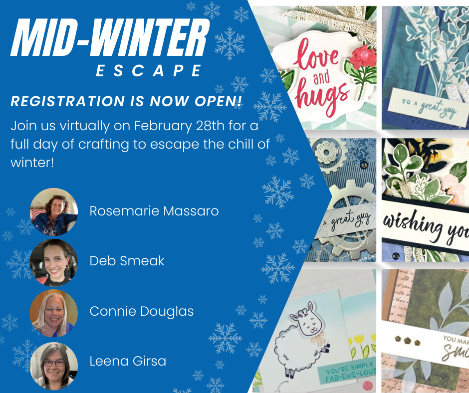 Join my crafty friends and I for a day as we escape to our craft rooms for a full day of creating. Throughout the day in our private Facebook group, we'll make SIXTEEN beautiful projects using new products from the 2026 January - April Mini Catalogue. We'll also do some mystery stamping and there'll be opportunities to win prizes.