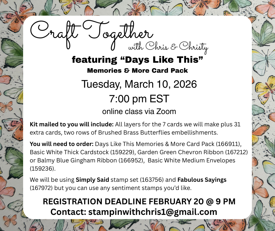 Class is $20. All layers and die cuts will be sent to you to make a total of 37 cards!