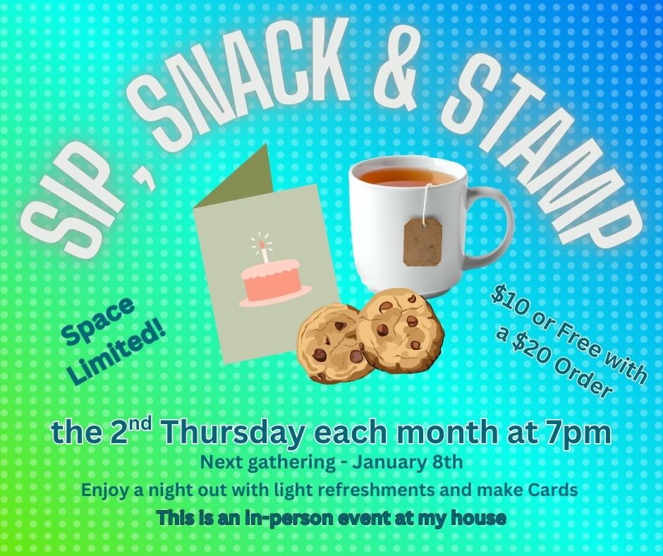On the second Thursday every month I offer a relaxed gathering to socialize, have a snack & make 3 cards