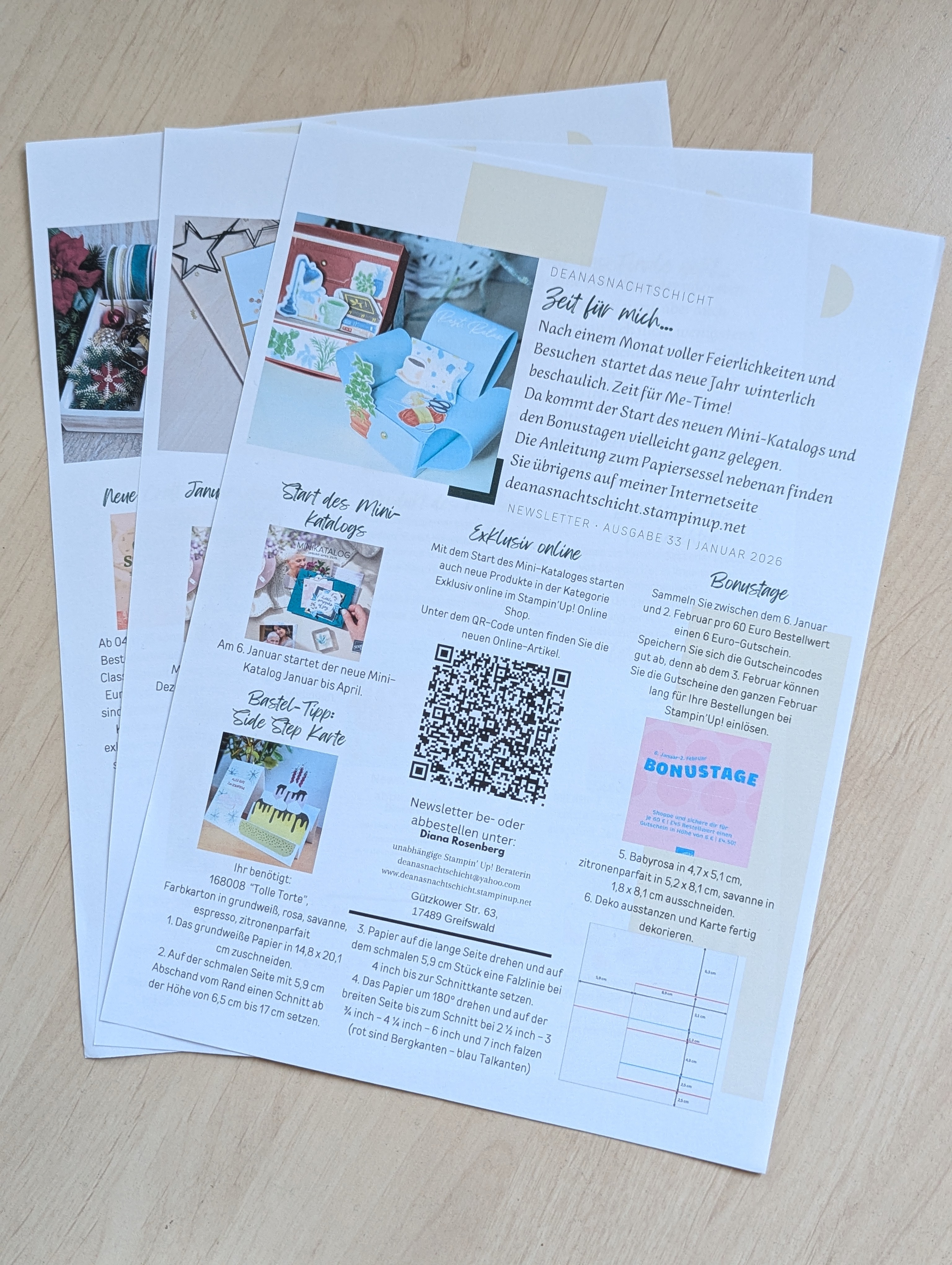 Alle Abonnentinnen erhalten heute Abend Neuigkeiten von Stampin'Up!, Informationen zu geplanten Events und Basteltipps. Interesse? Melden Sie sich gern zum Newsletter an: deanasnachtschicht@yahoo.com