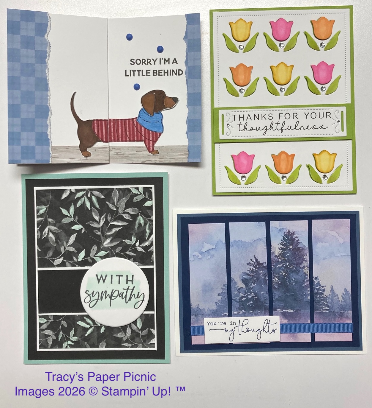 This fun cardmaking class makes 4 different cards while learning new techniques and honing your creative skills. The class is designed for participants with some crafting experience and for more experienced crafters. To view examples of what we make, check out my blog at: www.TracysPaperPicnic.blogspot.com