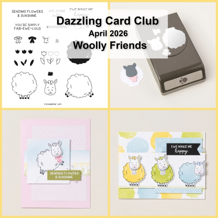 Each month as part of the club, you’ll receive approximately $25 of Stampin’ Up!® product, a full color tutorial (by email) and the rest of the supplies to make 8 cards—2 each of 4 designs—including envelopes. You’ll have the opportunity to add the featured stamp set or bundle each month, as well as other items we’ll be using.