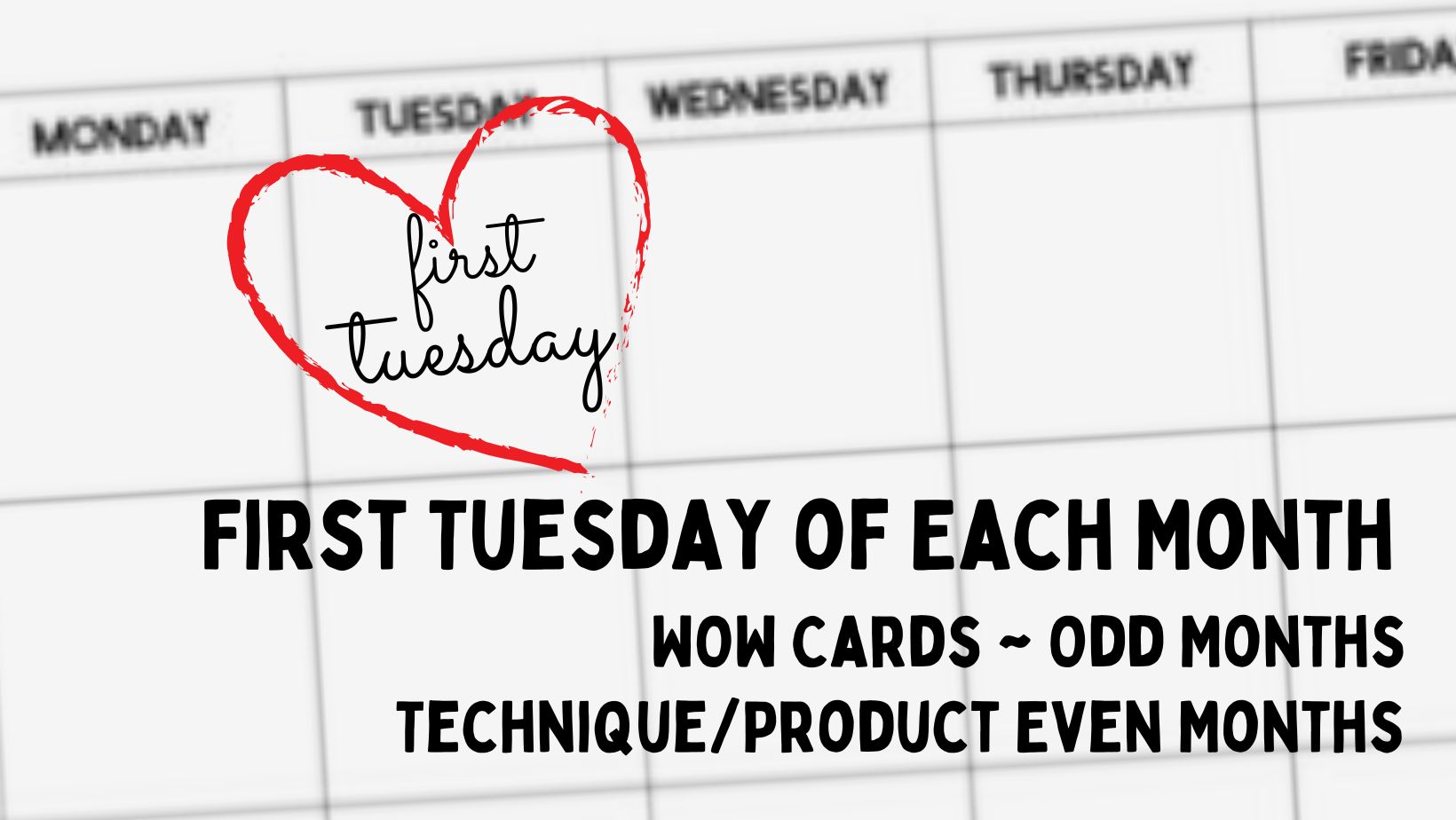 Here are the overall details for First Tuesday classes...Make plans to join us the first Tuesday of each month for either a WOW Cards (odd months) or Technique/Product (even months) session! Learn something new or refresh your skills...PLUS have a great time with your stampin' friends!