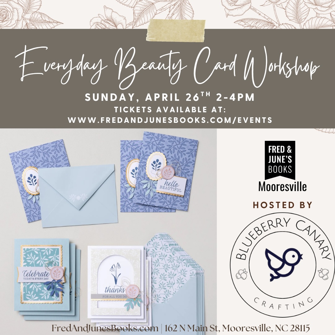 Join us at Fred and June's Bookstore Mooresville location for a fun afternoon with Tina Taylor of Blueberry Canary Crafting from 2-4pm!