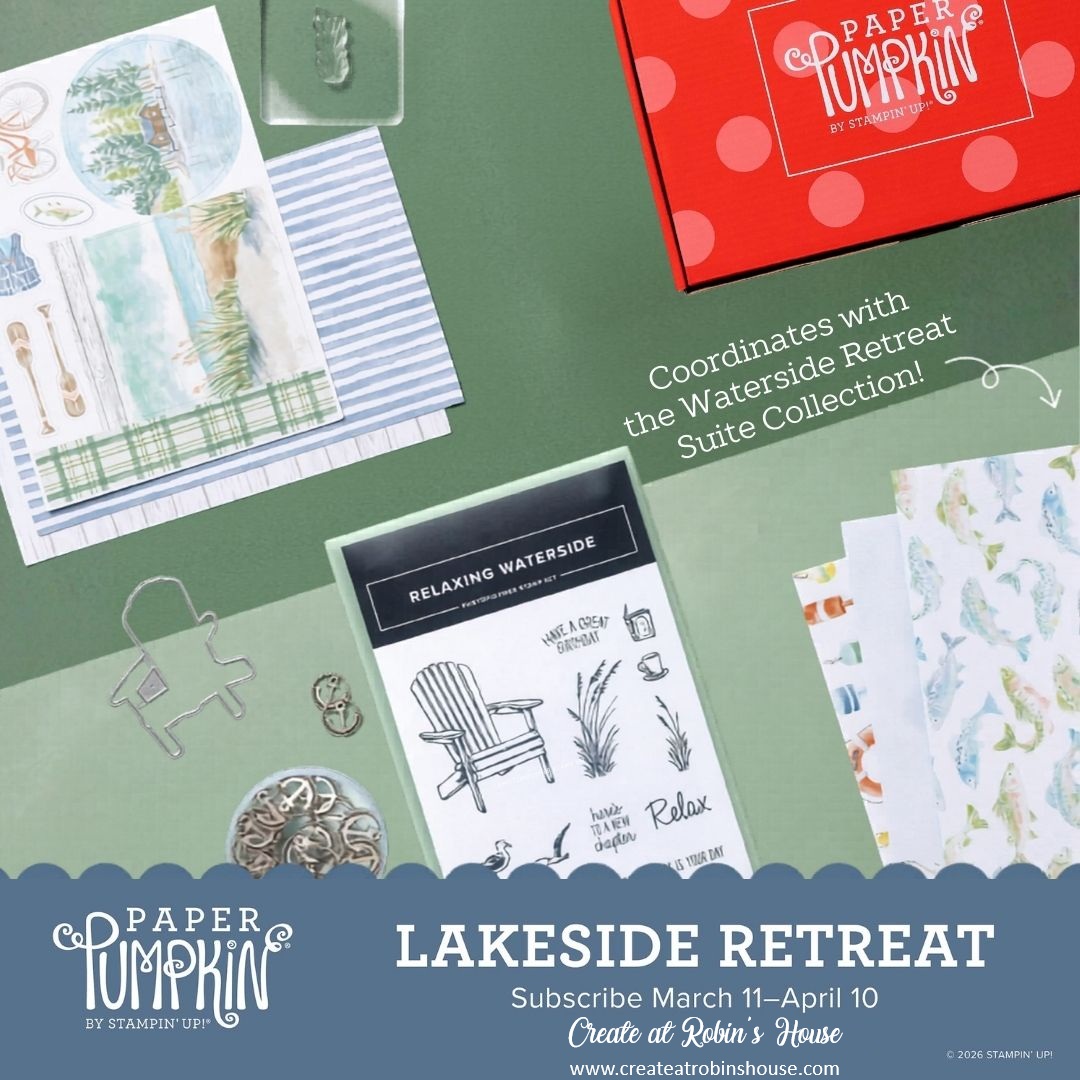 This is an opportunity to assemble your Paper Pumpkin as a group! If you subscribe by the 10th of the month, you might receive the kit for this month. If you are a Paper Pumpkin subscriber with me, the Party is free! If you're not a subscriber, it works just like Let's Kit Together. Previous kits and partial kits are available if you need something to work on. Find more info and all projects on my website: www.createatrobinshouse.com. Reserve your spot at createatrobinshouse@yahoo.com. Happy crafting!