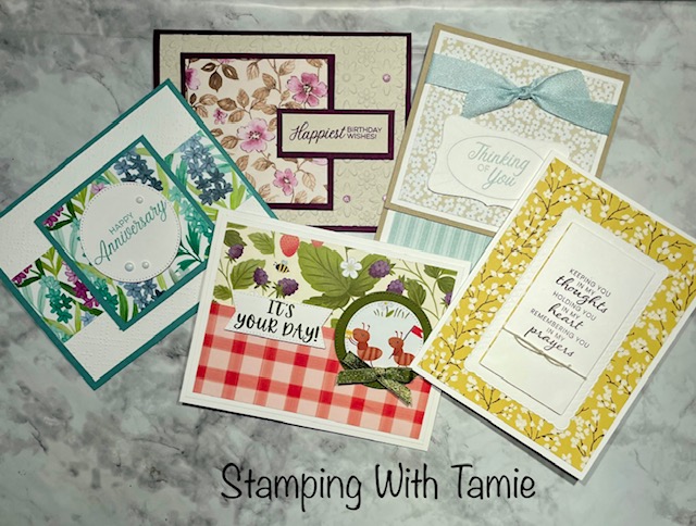 Come and make 2 each of 5 different cards with envelopes for FREE with a $28.00 order (before shipping handling and tax) or pay a flat fee of $23.00.