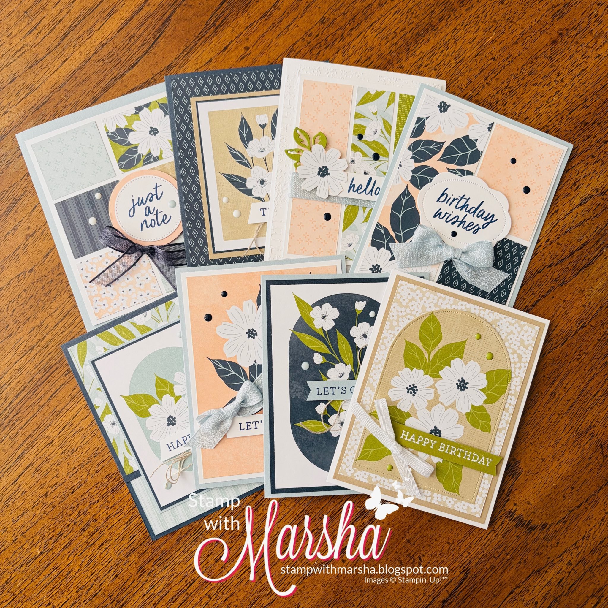 Join my virtual Card Club each month to make EIGHT beautiful projects (two each of four designs) featuring a specific stamp set or bundle. Make these projects in your own home, at a time that's convenient for you, using the video and/or PDF tutorials. The club kit is $30 for porch pick-up, or $38 if you need your kit shipped. The featured bundle or stamp set is sold separately.