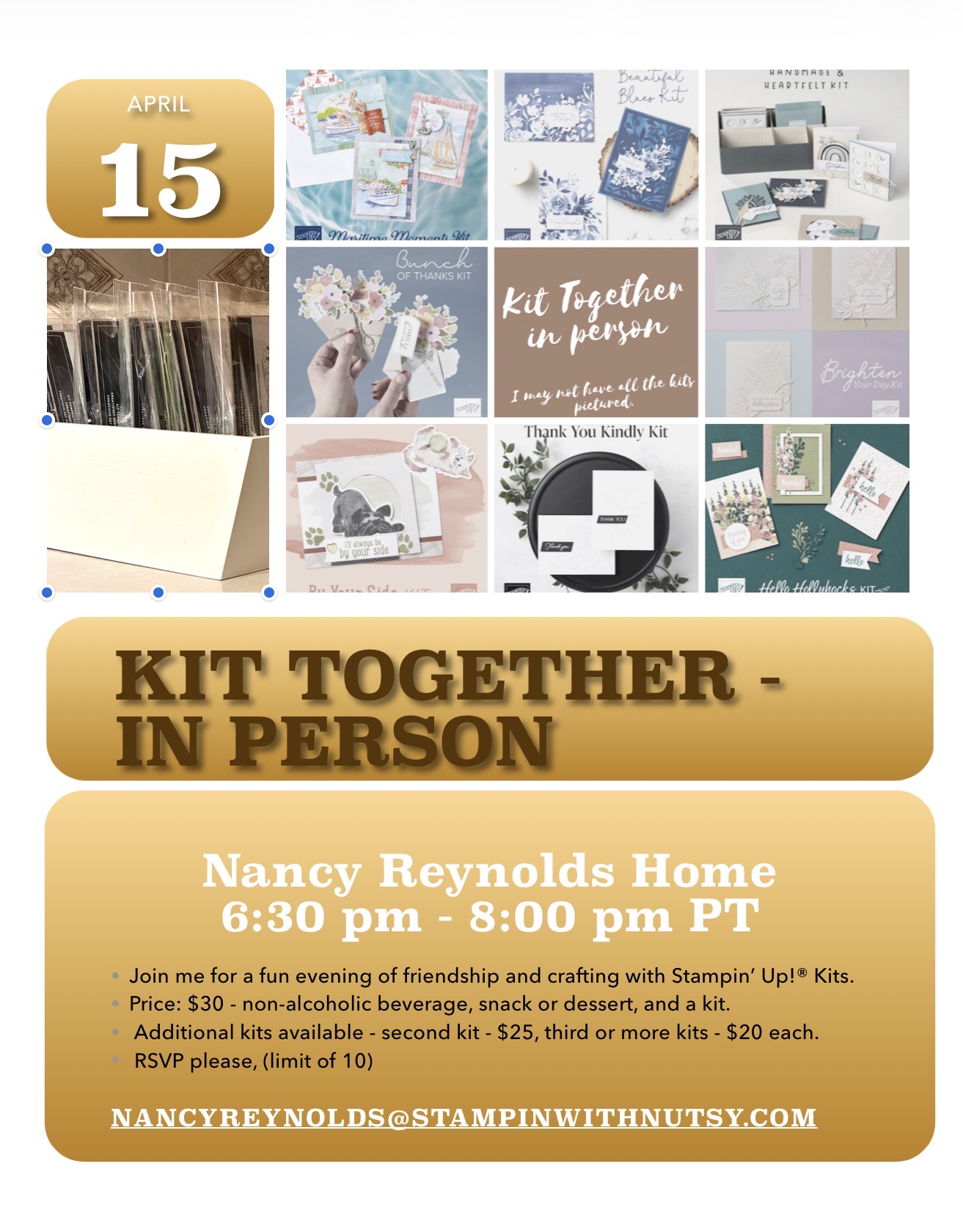 A fun evening at my home in Bellingham, WA with a snack or dessert and non-alcoholic beverages. We'll craft with Stampin' Up! Kits and enjoy time with new and old friends.